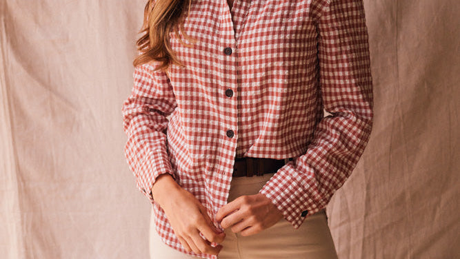 Kaley | Seersucker Gingham Button Down | Cherry Pie