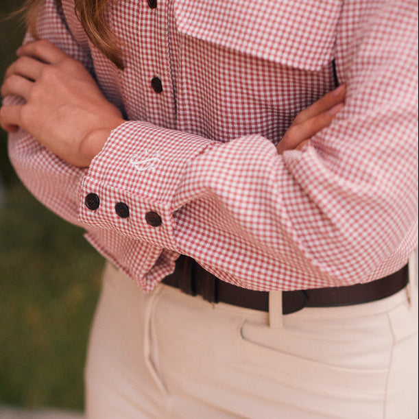 Jessica II | Gingham Equestrian Button-Down Shirt | Cinnamon